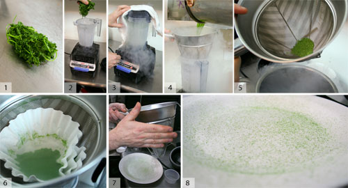 粉狀的新鮮藥草。這項技術(shù)可以使您的粉末與任何干草藥一樣細,但又新鮮。它看起來很棒,氣味很香,味道也很香。這是均勻涂抹草藥混合物的**方法。1)用開水將草藥燙一下,否則它們會變黑。擠出多余的水。2)用液氮至少將Vita-Prep投手裝滿。帶有濕刀片的大水罐不能很好地解決這個問題,因為產(chǎn)品會四處噴灑。帶有干燥刀片的較小的水罐永遠不會造成問題。將草藥放入水罐中,使其冷凍。3)蓋上并融合,緩慢地朝著高速前進。添加液氮后,請勿等待太久才能打開攪拌機,否則軸承會發(fā)出可怕的聲音。4)將混合物倒入湯鍋中。5)殘留在中國的東西對我們來說太粗糙了。將其放回投手進行下一輪比賽。6)通過咖啡過濾器將混合物倒入鍋中。這是好東西。7)將粉末放入中國風,然后將其輕拍到您的盤子上-在粉末仍冷凍的情況下進行。您也可以將這些東西折成鮮奶油,土豆泥等。記住,隨著香草的融化,香氣和味道會急劇增加。不要過分。8)解凍。